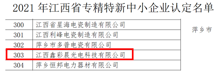 “專精特新” | 江西鑫彩晨光電科技有限公司榜上有名