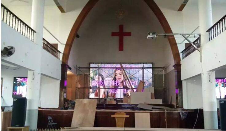 知名品牌鑫彩晨為寧波高橋基督教堂室內(nèi)全彩led顯示屏成功落戶
