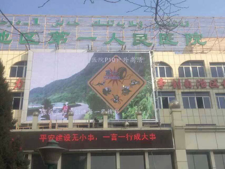 新疆喀什第一人民醫(yī)院P10全彩顯示屏的加盟,為這個地方注入了更多的商機和機遇,項目采用鑫彩晨顯示PH10戶外全彩LED顯示屏,面積達105平方米,成為鑫彩晨在新疆安裝的第四塊戶外LED顯示屏。該屏幕被設(shè)立于入口正上方的黃金位置,地理位置優(yōu)越。