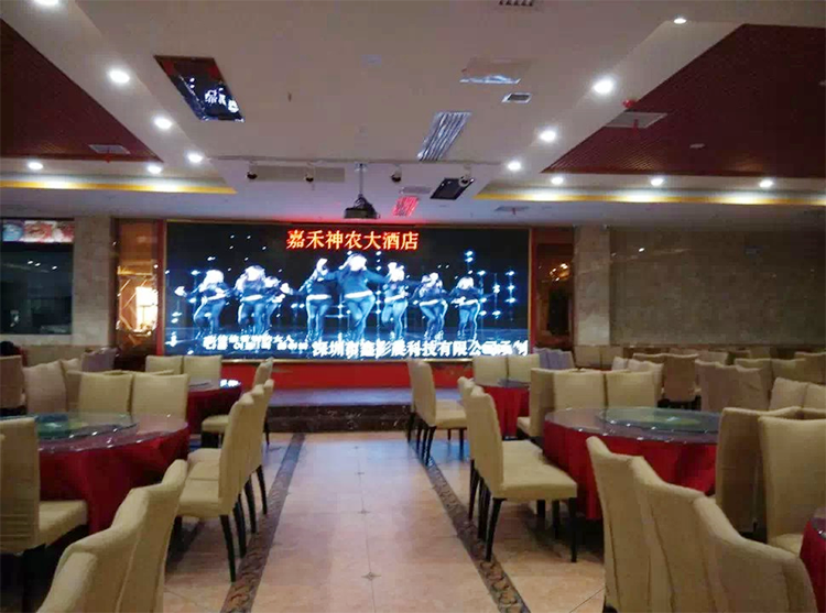 湖南郴州嘉禾神農(nóng)大酒店室室內(nèi)全彩屏 由深圳鑫彩晨科技有限公司承辦。